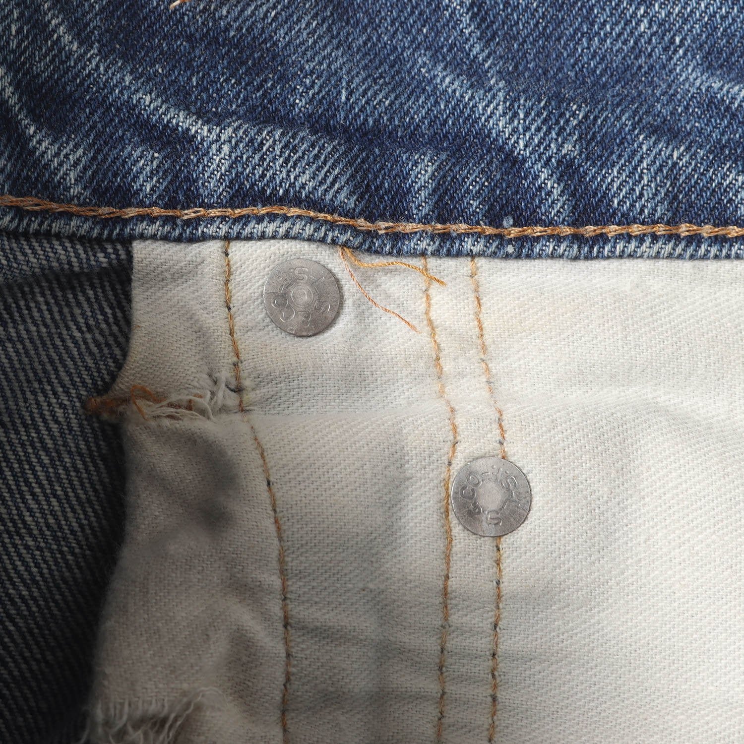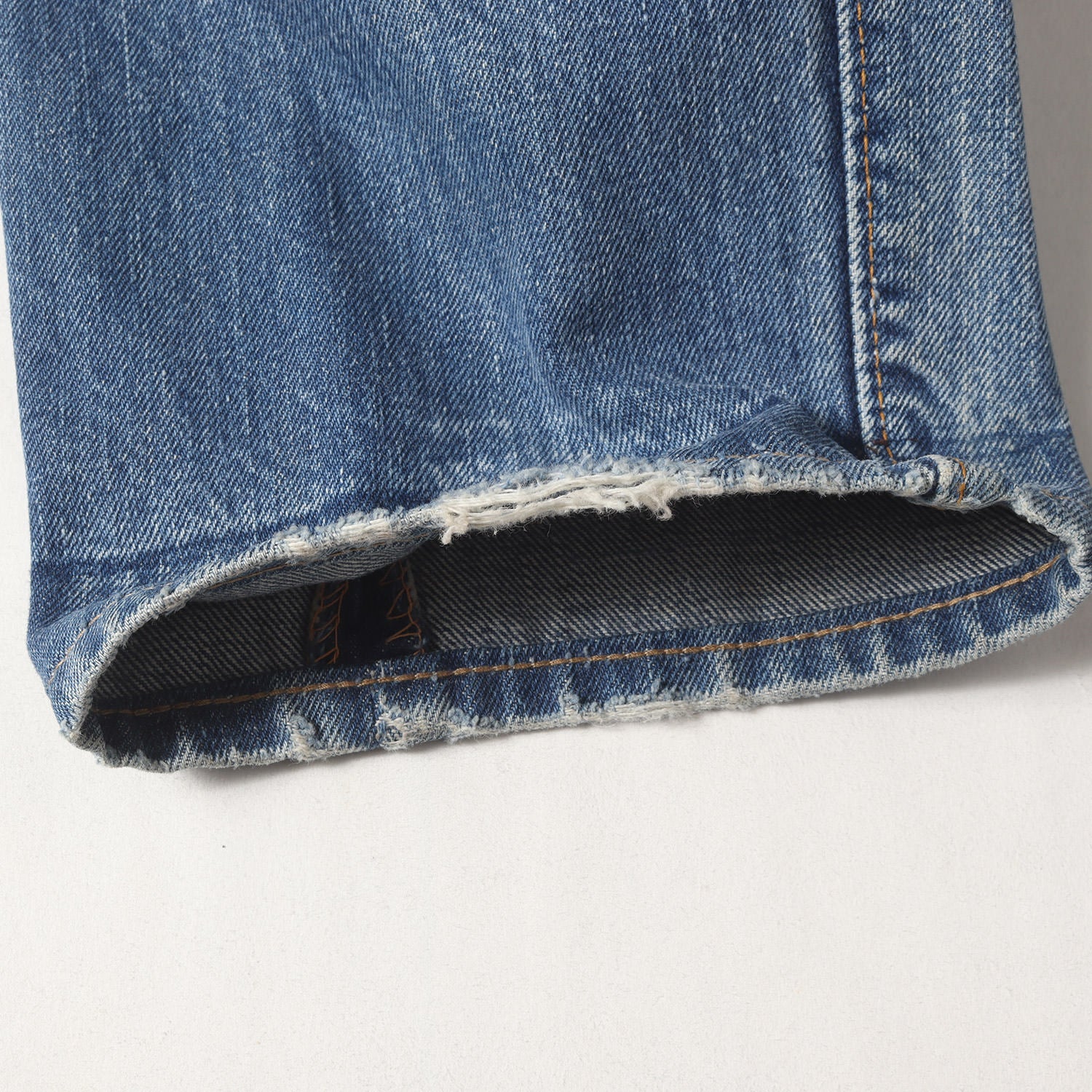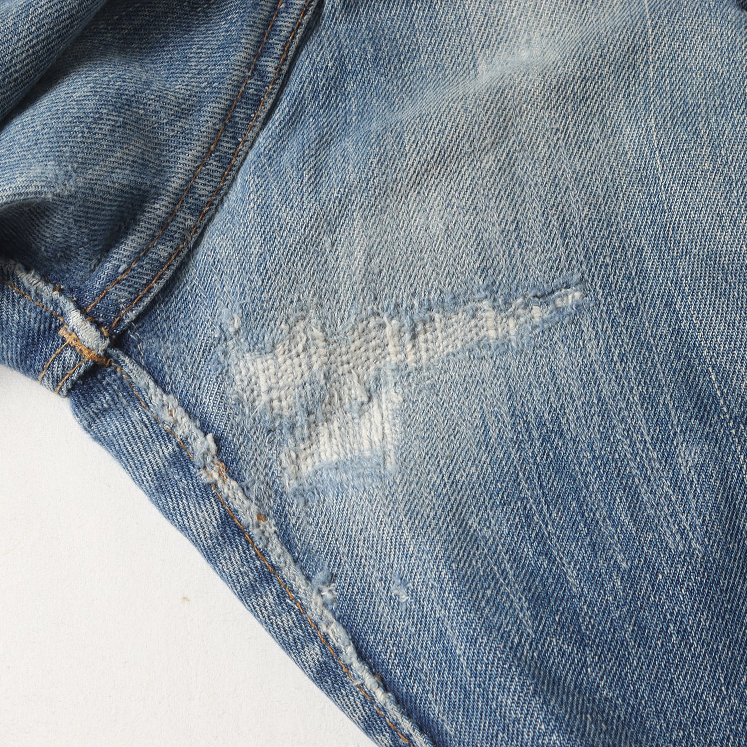 | 状態詳細 | ・股にリペアと裾擦れが見られますが、その他に大きなダメージはありません。 ・右ポケットスレーキに破れ、裾にステッチを抜いた跡あり ・所々に擦れ、汚れ、ステッチ抜けあり |