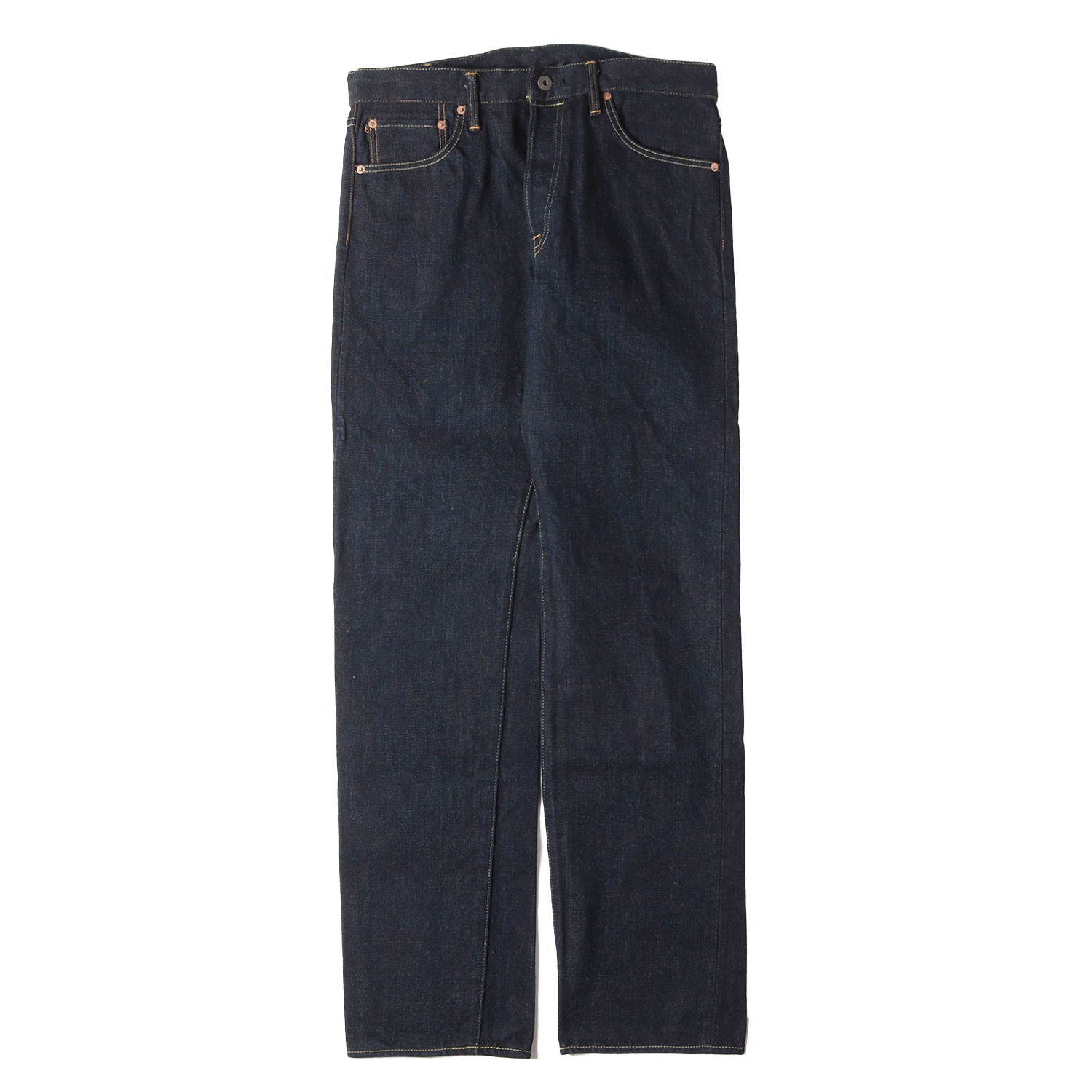 | サイズ備考 | ウエスト約86cm(平置き)×股上約29cm×股下約90cm×ワタリ幅約32cm(もも幅)×裾幅約21cm |