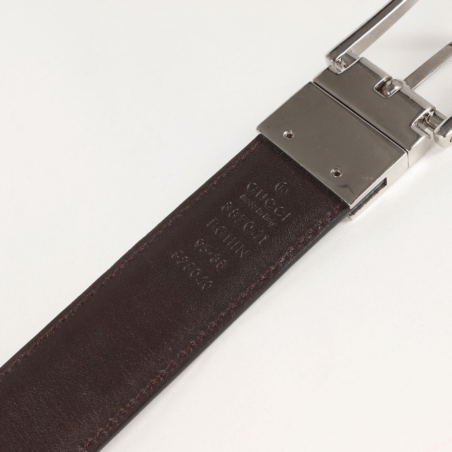 | サイズ備考 | 全長(バックル含む):約110cm 穴まで(バックルピンから):最短約87cm×最長約97cm幅約3cm バックル:縦約3.7cm×横約4.5cm |