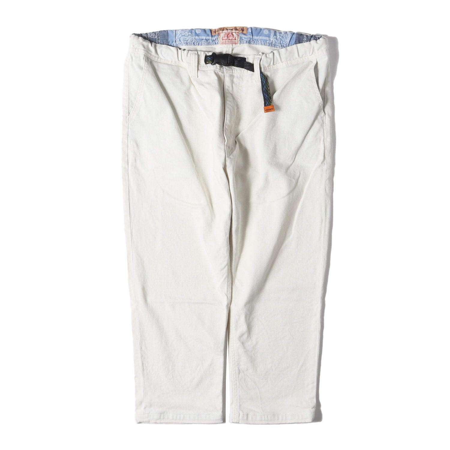 | サイズ備考 | ウエスト約88cmから約98cm(平置き)×股上約28cm×股下約56cm×ワタリ幅約35cm(もも幅)×裾幅約18cm |