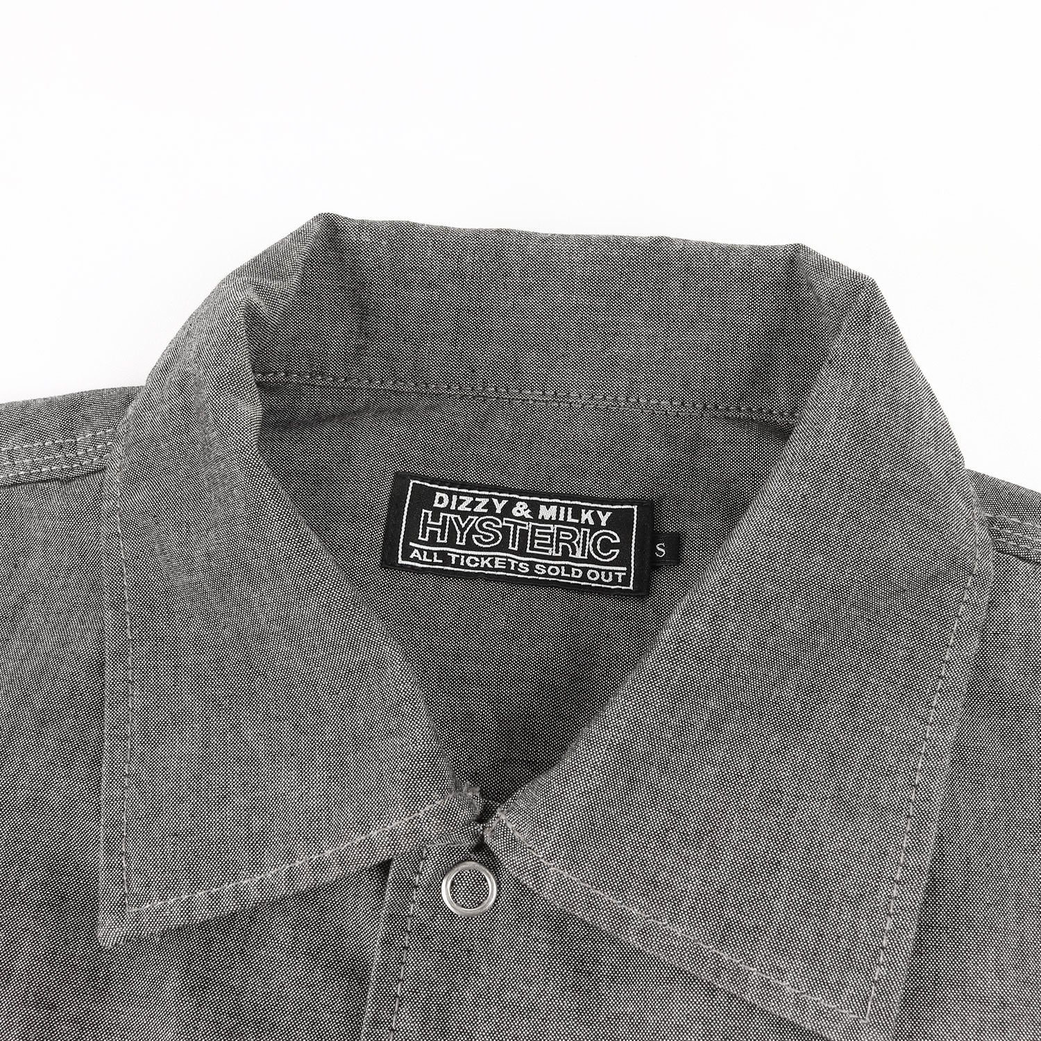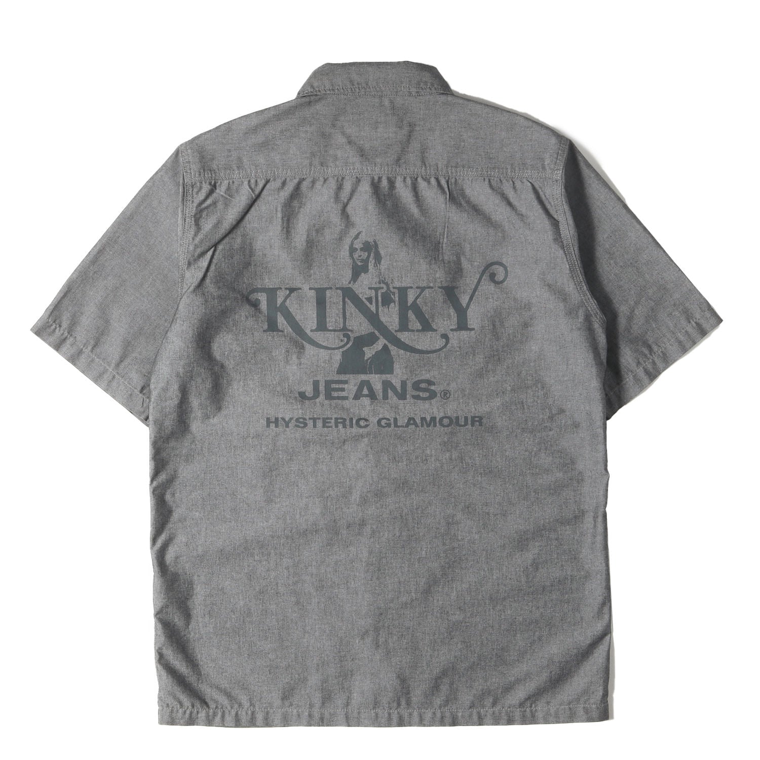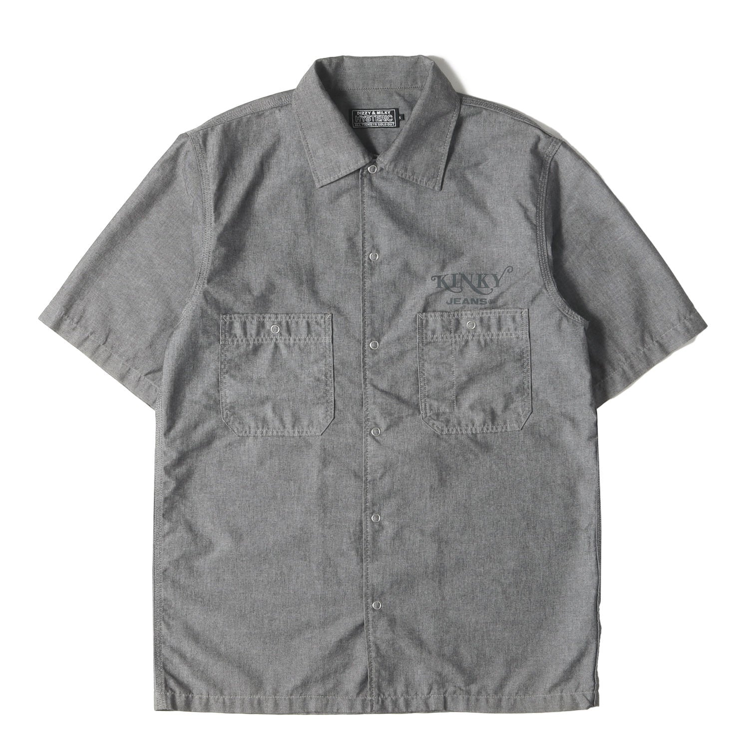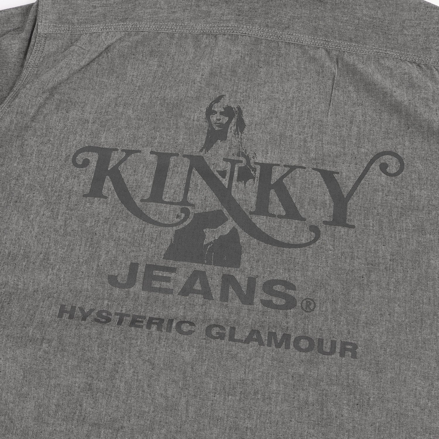 “KINKY JEANS”ロゴプリントをあしらったスナップボタンタイプのシャンブレーシャツになります。