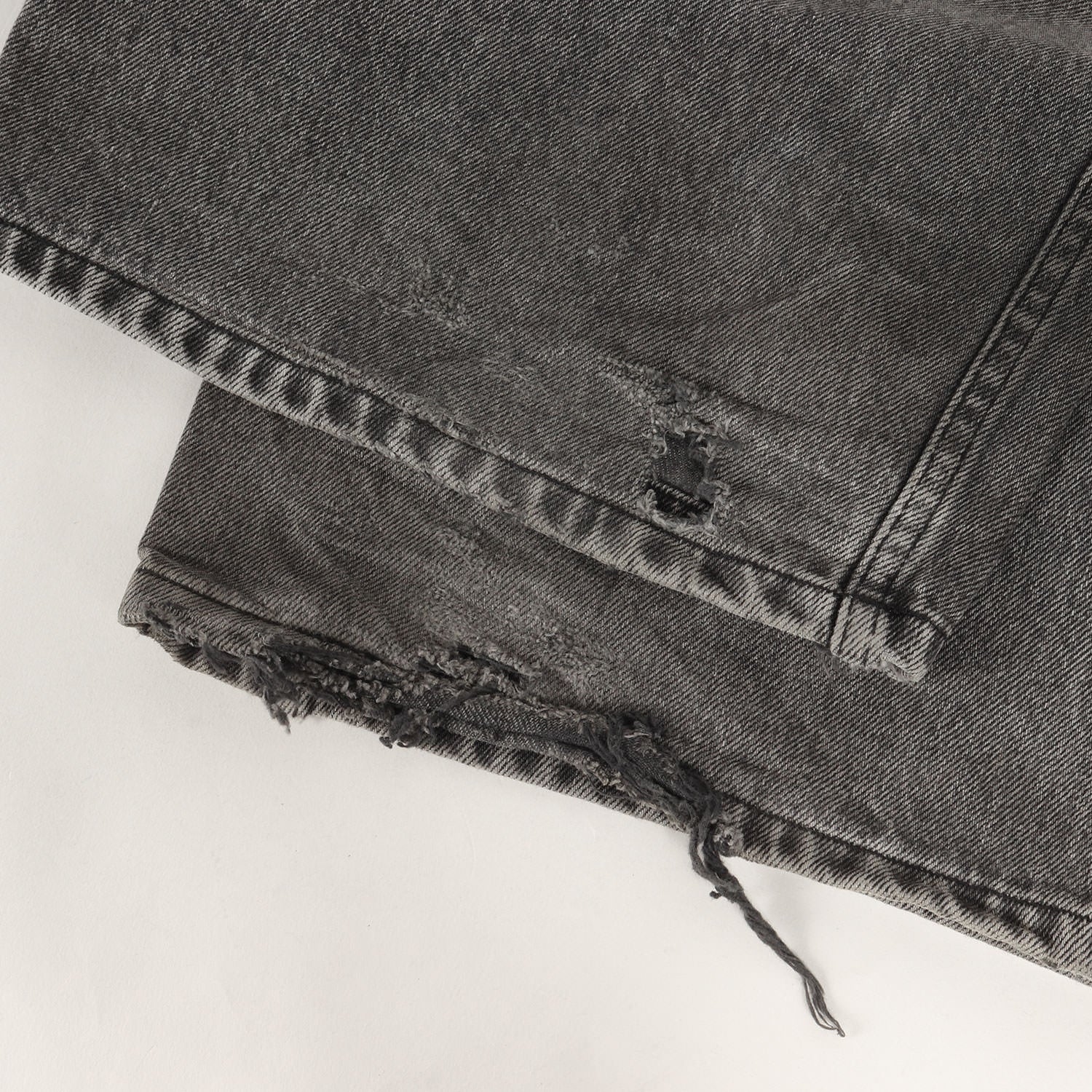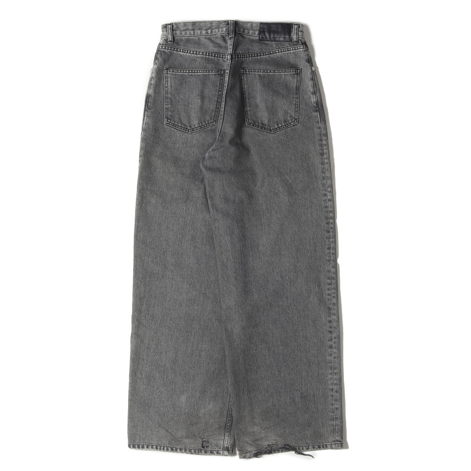 | 状態詳細 | ・左膝裏付近、フロント右太ももに移染による変色がございます。 ・バック右ポケット、両裾口にスレによる穴がございます。 |