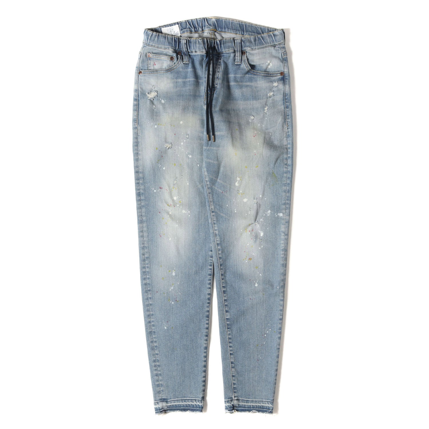 | サイズ備考 | ウエスト約76cmから約92cm(平置き)×股上約25cm×股下約78cm×ワタリ幅約29cm(もも幅)×裾幅約12cm |