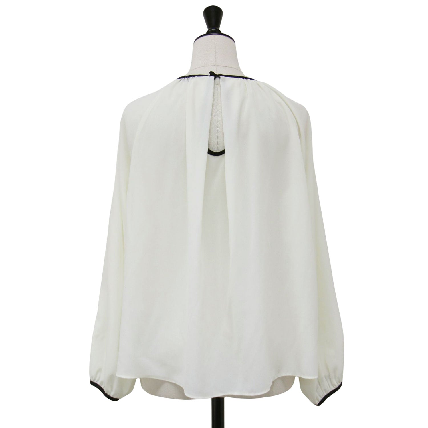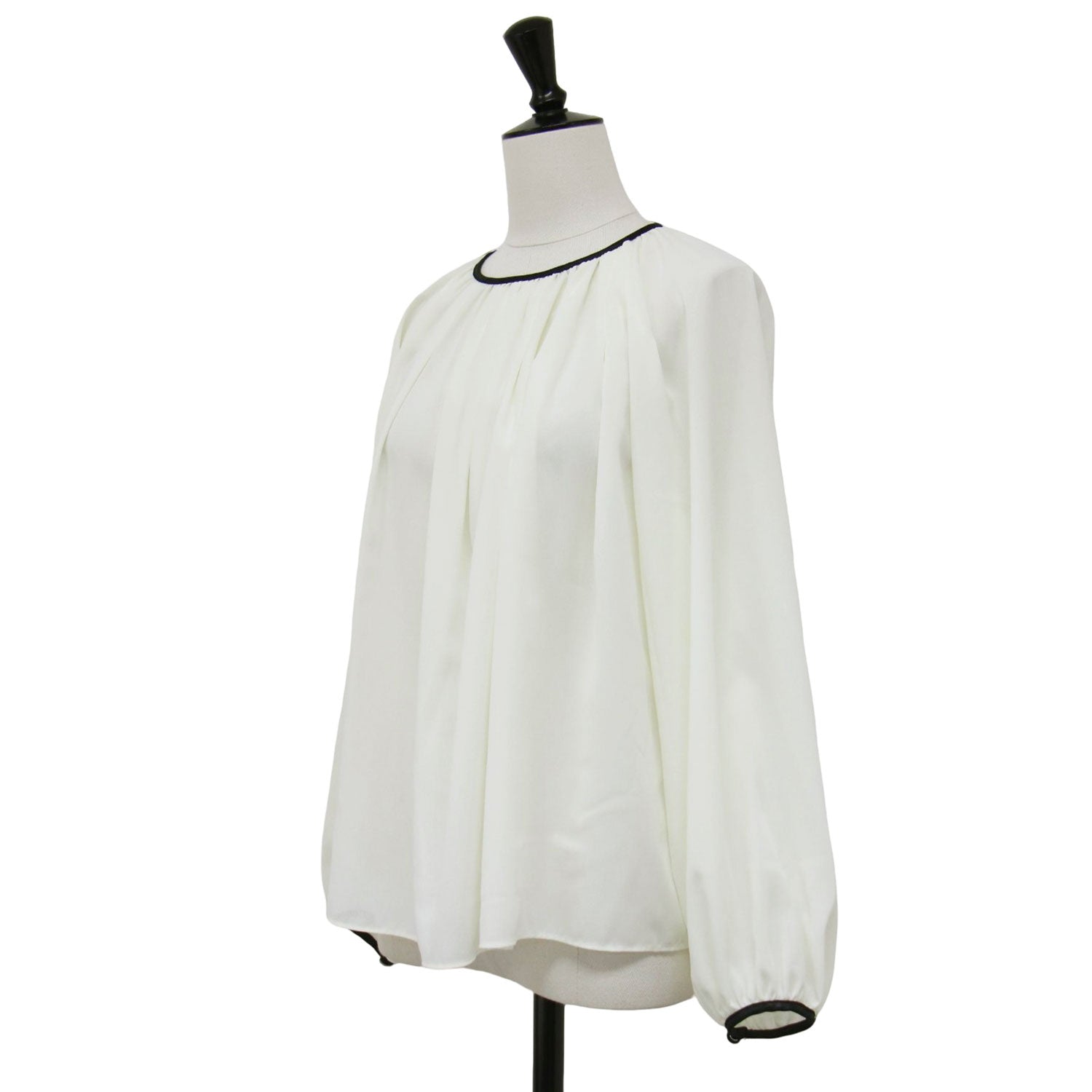 リキッドジョーゼット ギャザーネック ブラウス / 長袖 バイカラー パイピング