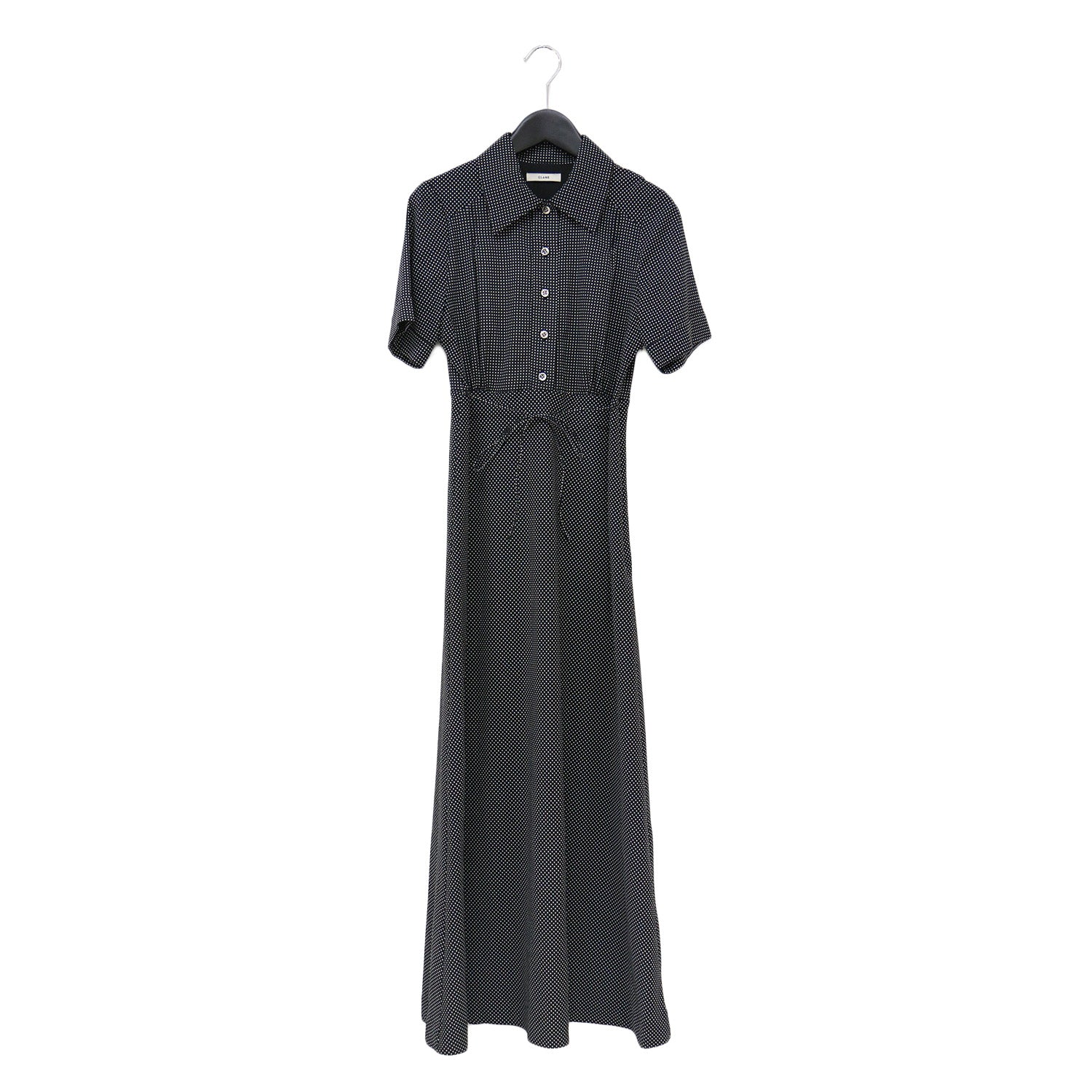 ドット シャツカラー レディ ワンピース / DOT SHIRTS COLLAR LADY OP ロング丈 半袖 襟付き フレア