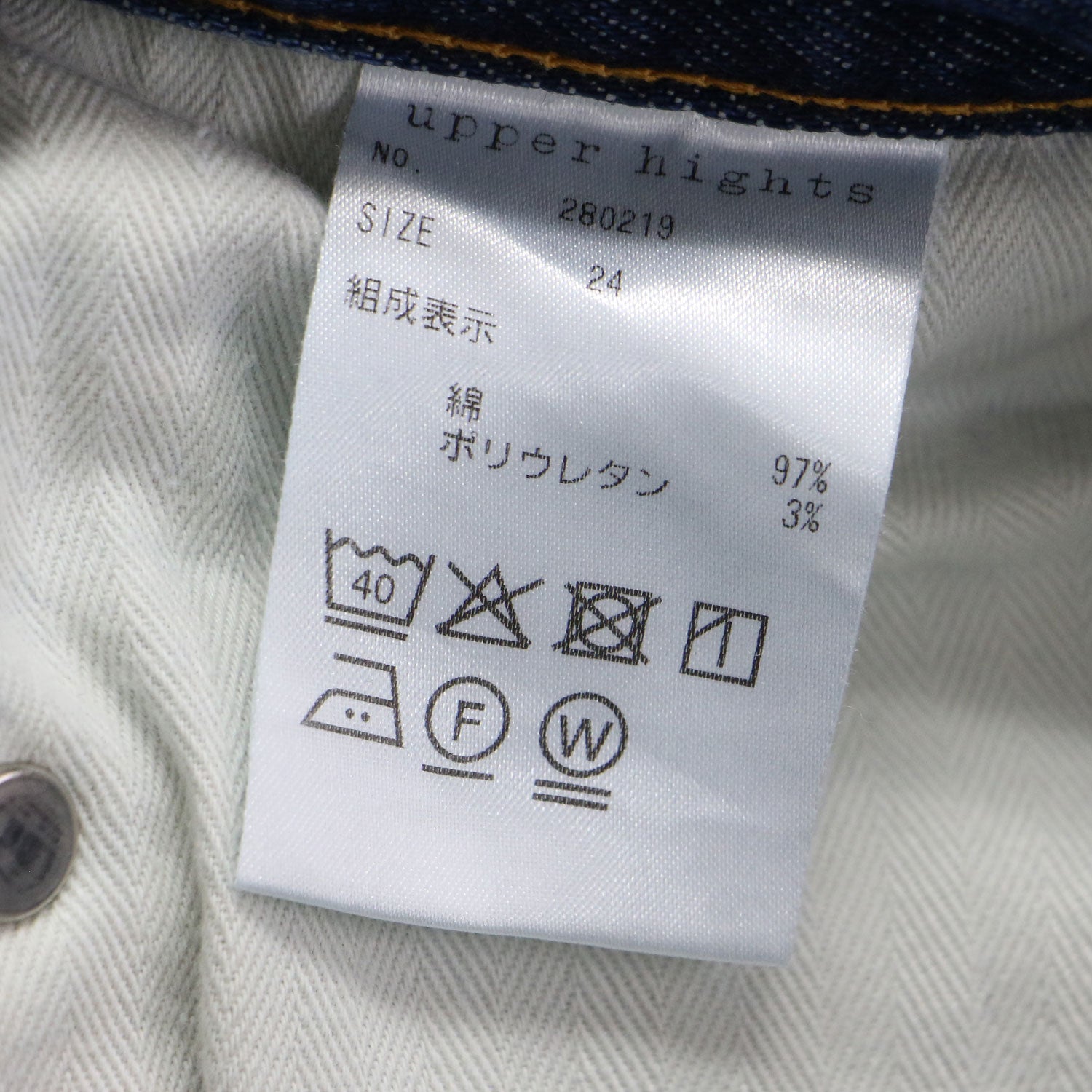 | サイズ備考 | ウエスト約70cm(平置き)×股上約25cm×股下約66cm×ワタリ幅約26cm(もも幅)×裾幅約14.5cm |