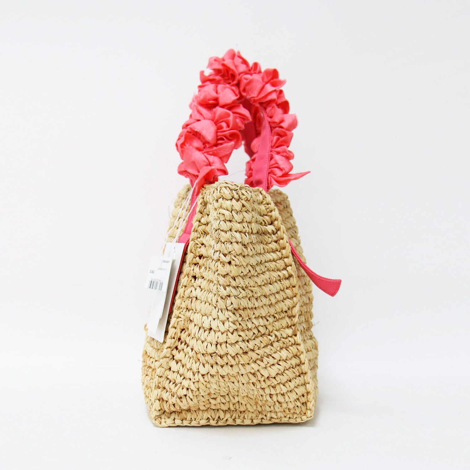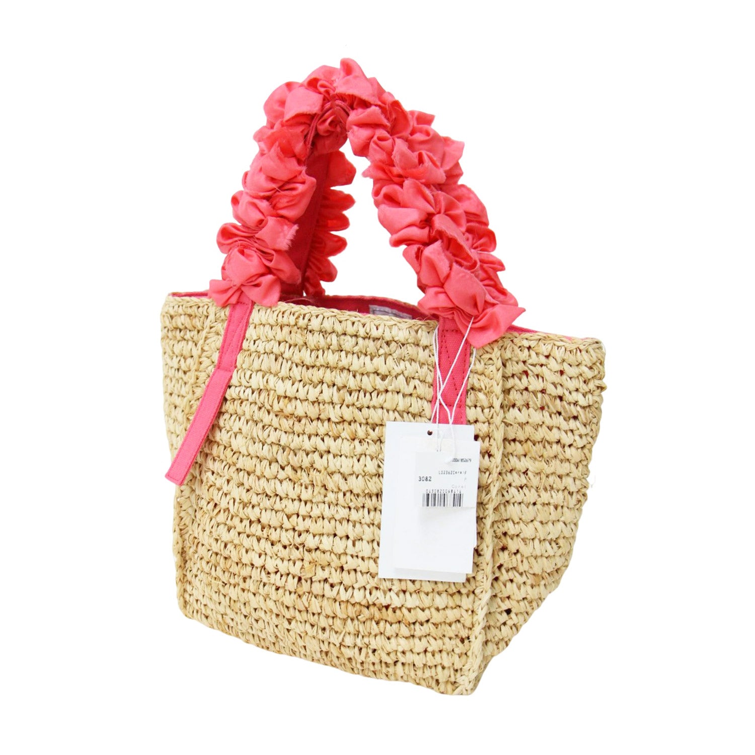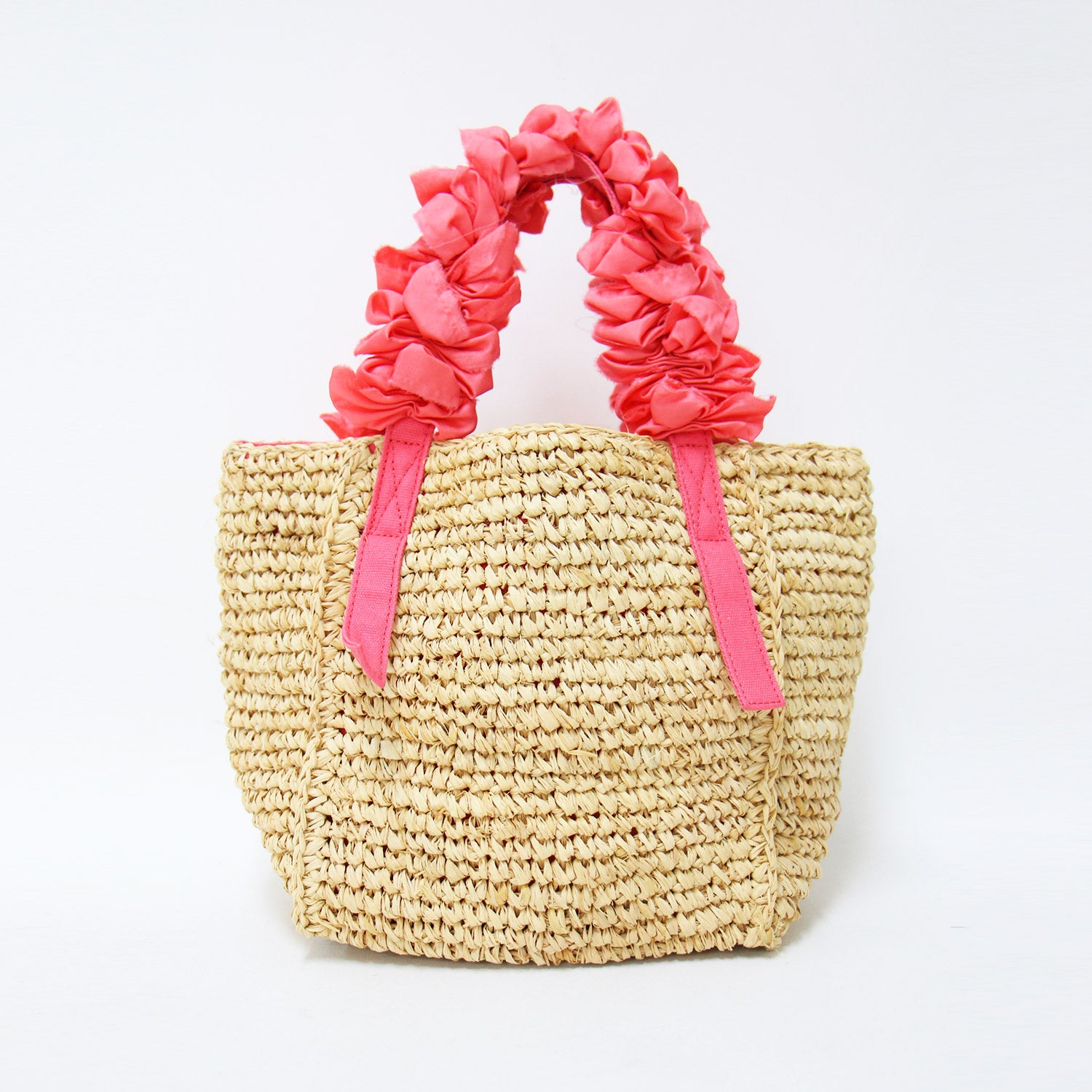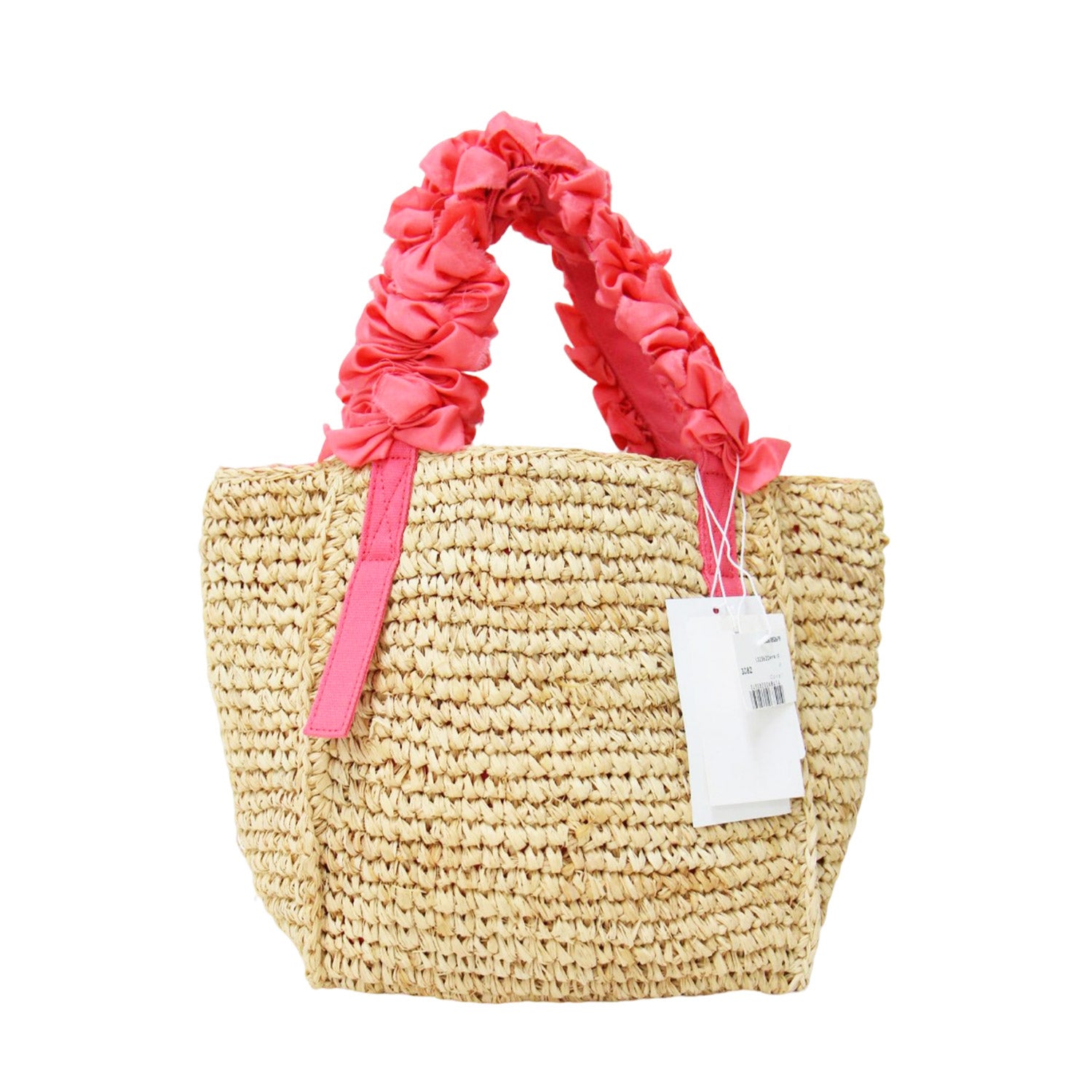 伊勢丹限定 グレープハンドル ラフィア トートバッグ / カゴバッグ ハンドバッグ フリル シルク