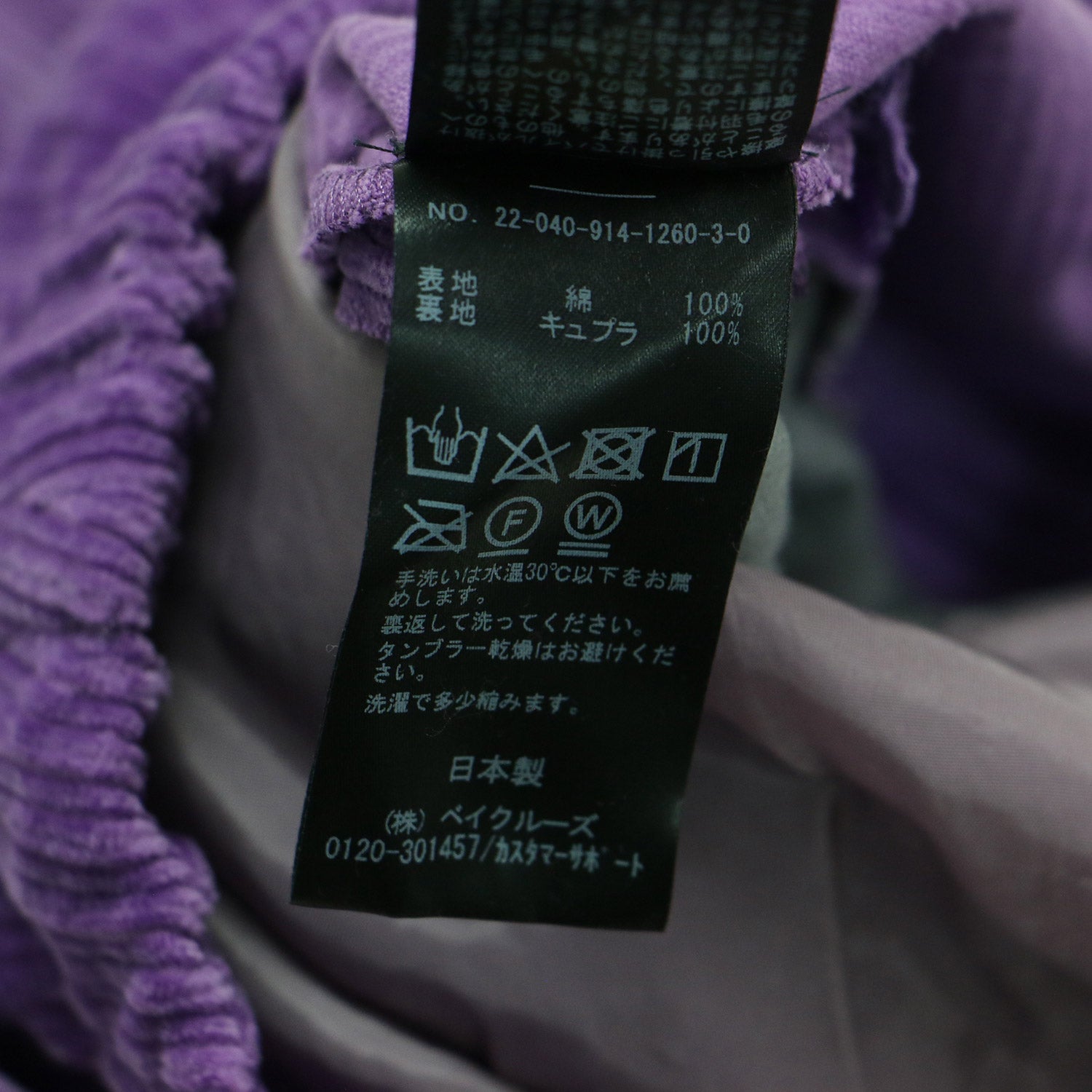 | サイズ備考 | ウエスト約35.5cm×股上約36cm×股下約67cm×ワタリ幅約32cm×裾幅約21.5cm×総丈約125cm |