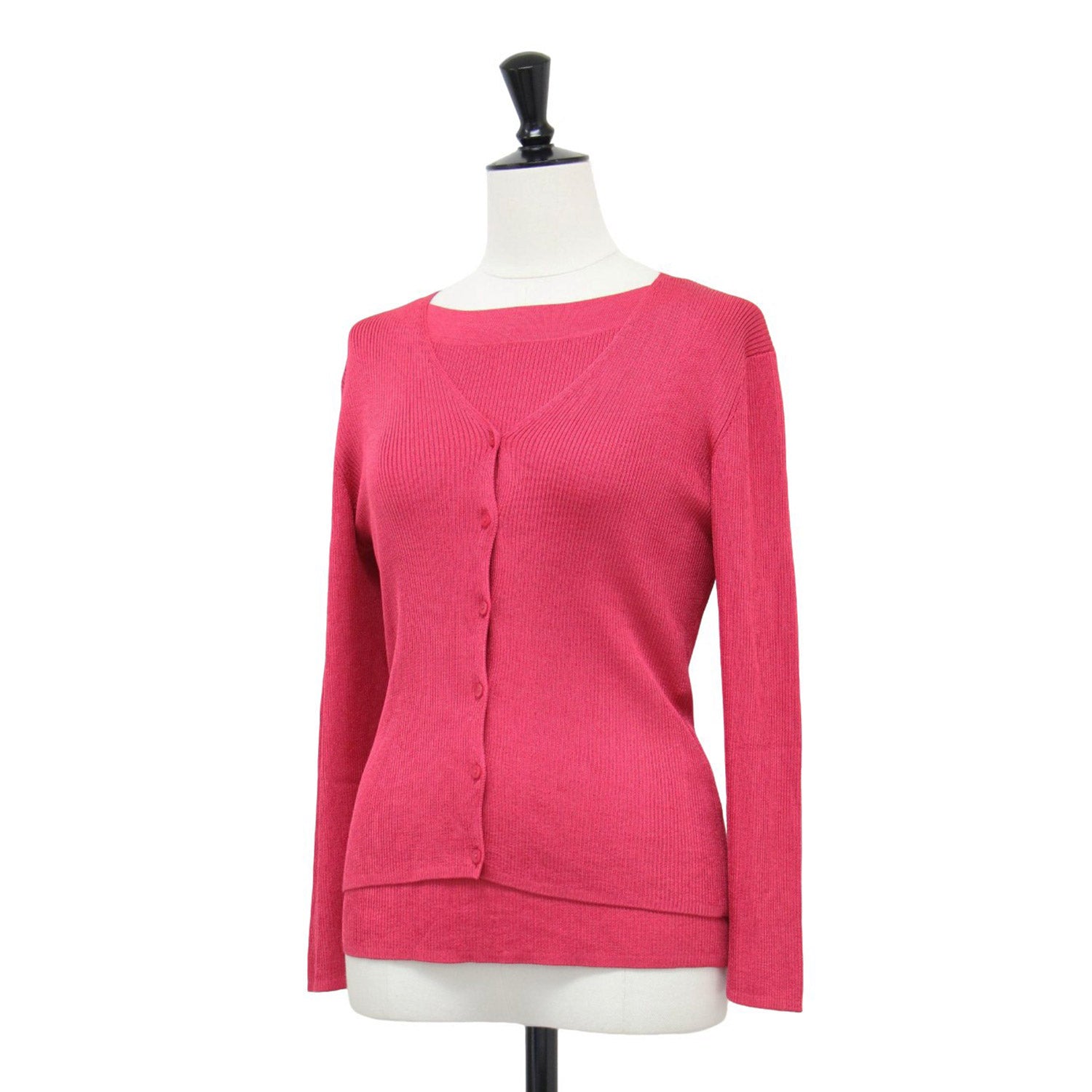 着丈約53cm(背中襟下から)×身幅約36.5cm(脇下から)×カーディガン:肩幅約34.5cm×カーディガン:袖丈約48cm(肩上から) インナー: 着丈約47cm(背中襟下から)×身幅約40cm(脇下から)×インナー:肩幅約34cm×インナー:袖丈約27.5cm(肩上から) |