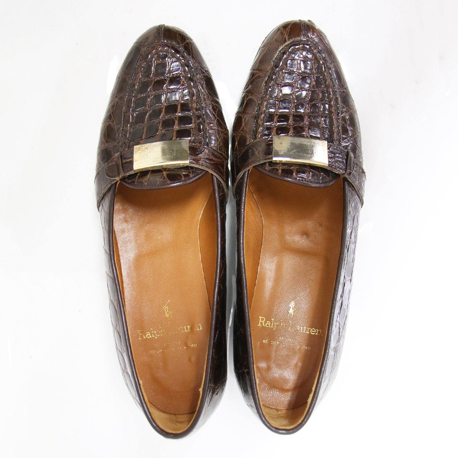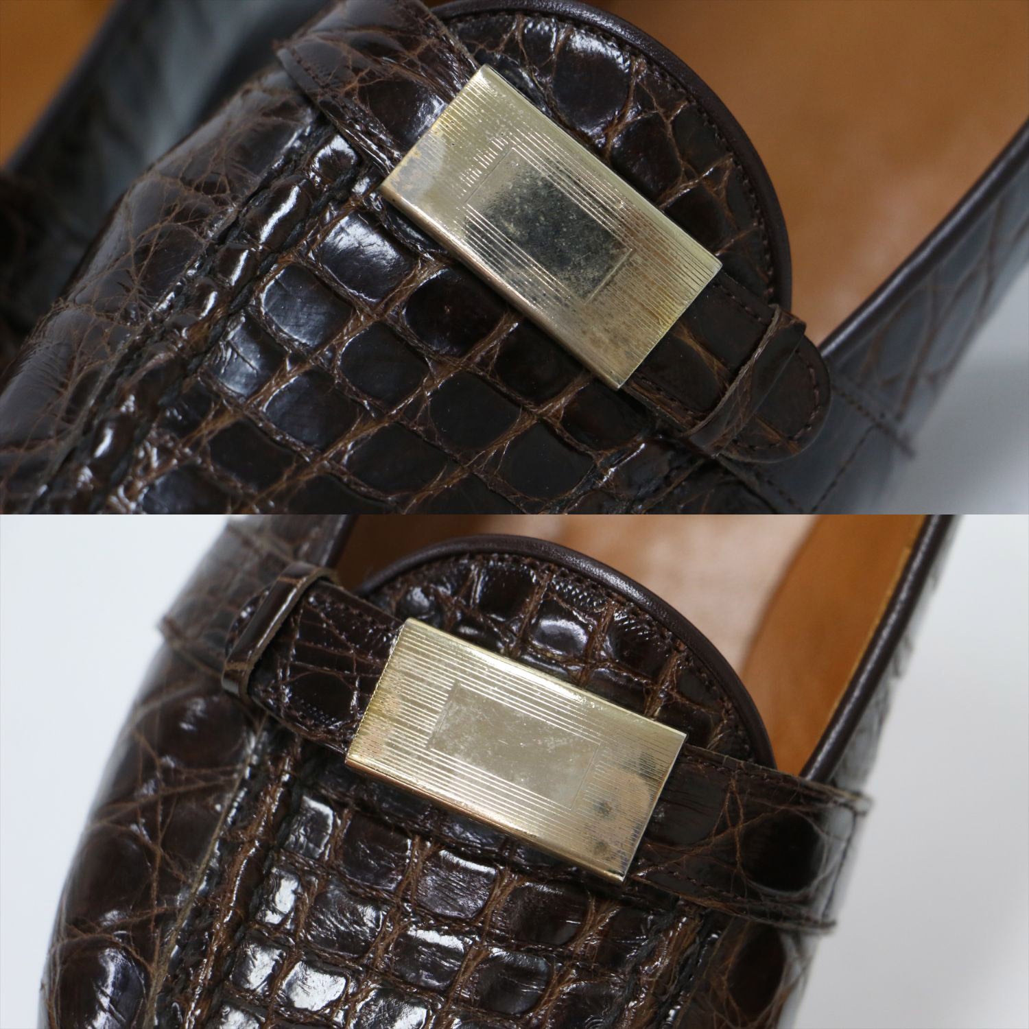 | 状態詳細 | ・プレートに汚れ、くすみがございます。 ・両足つま先にスレがございます。 ・ハトメ部分に緑青が発生しております。 |
