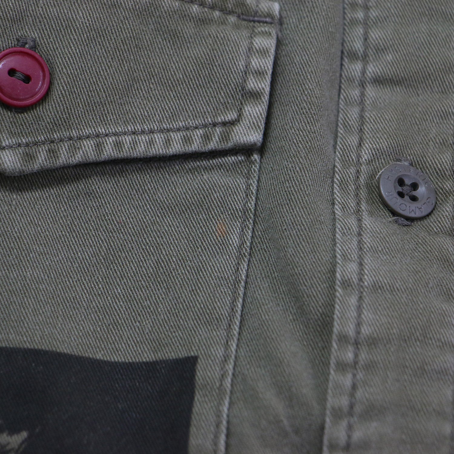 | 状態詳細 | ・左肘、右フロントにシミがございます。 ・第5ボタン横に変色がございます。 |