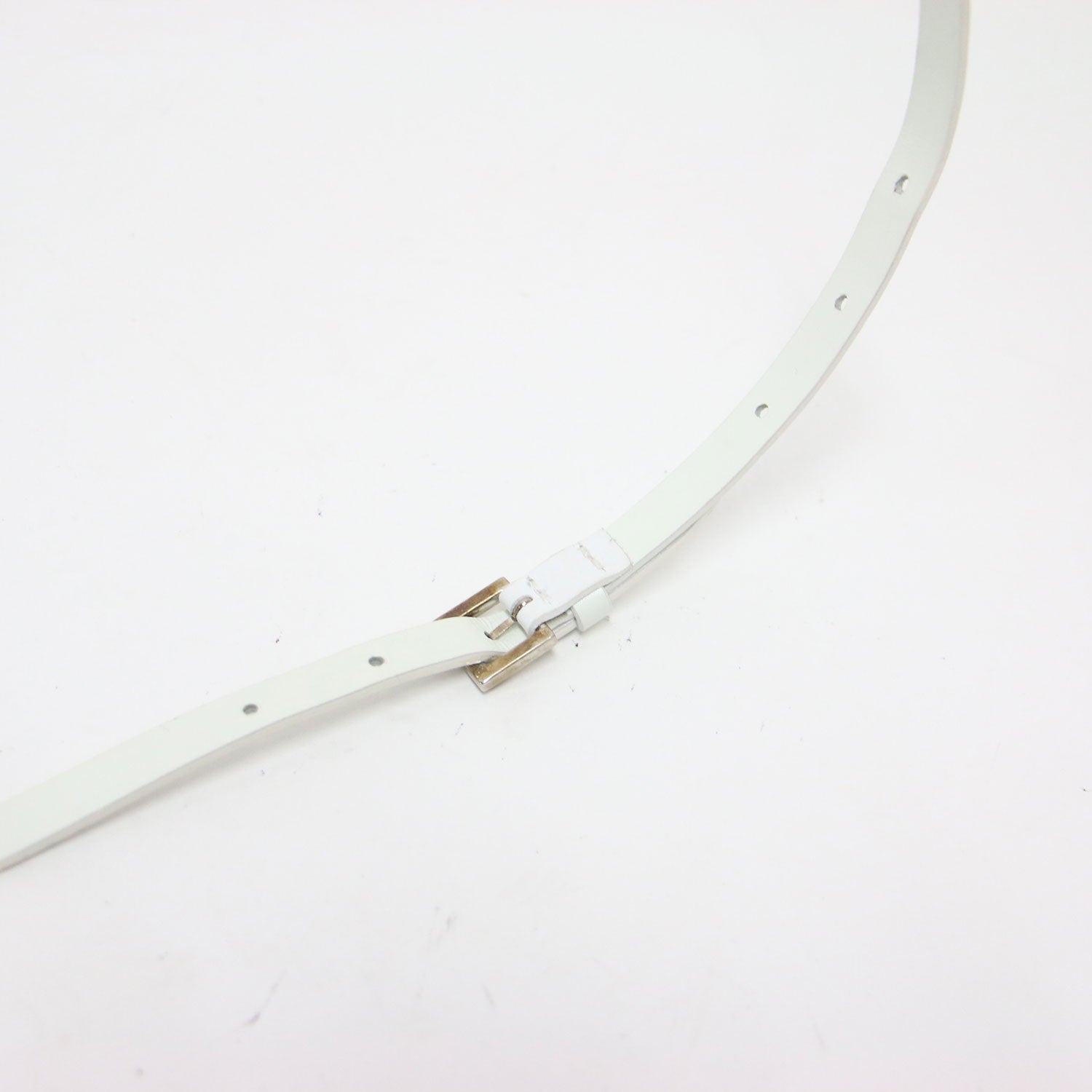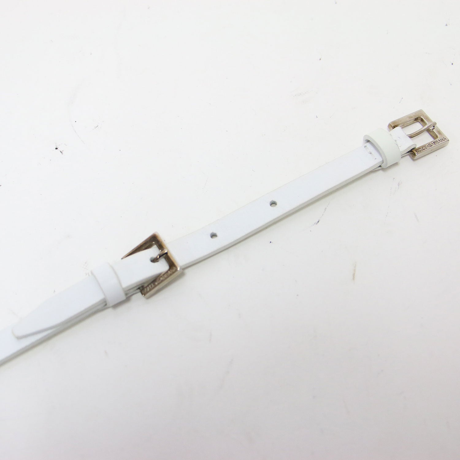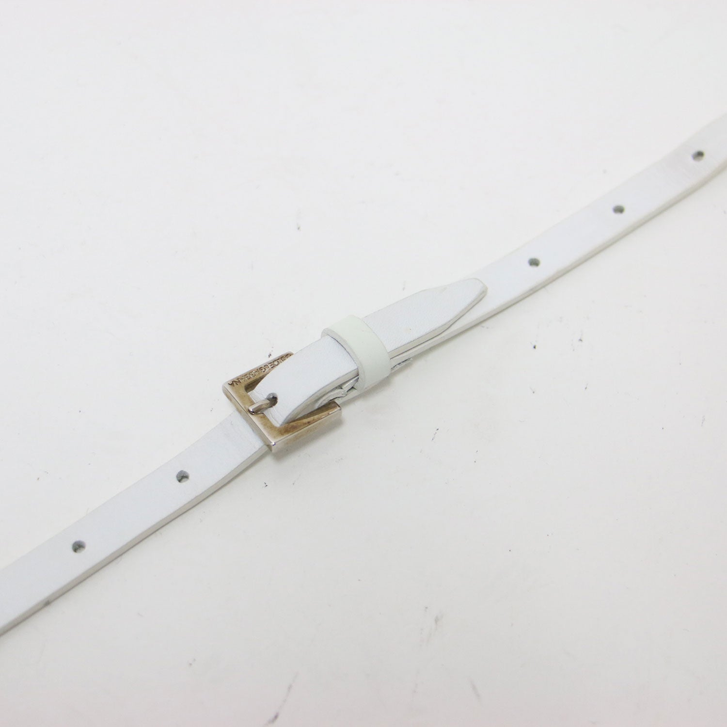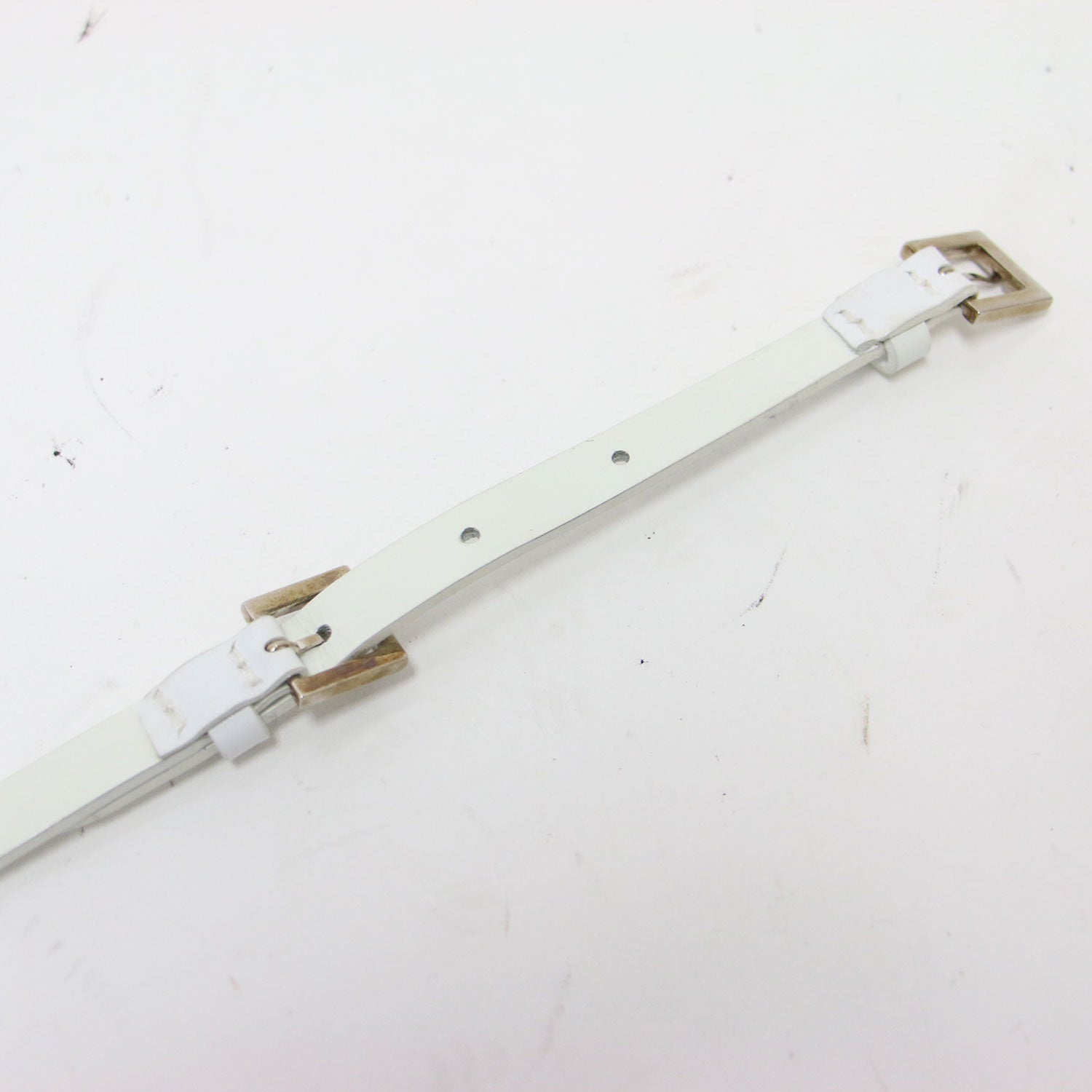 | サイズ備考 | 全長(バックル含む):約91cm 穴まで(バックルピンから):最短約79.5cm×最長約84.5cm幅約1cm バックル:縦約1.8cm×横約1.7cm |